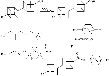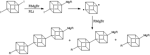 Due to their well-defined dimensionality and rigid geometry, cubanes could prove to be important building blocks in the developing world of nanoarchitecture, in the form of oligomeric compounds. It is possible to synthesise oligomeric cubanes in the form of alkylated [n]cubylcubanes. This is shown in the following scheme: